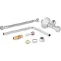 Le kit est équipé de tout ce dont tu as besoin pour un raccordement à leau efficace et sûr. La livraison comprend un robinet déquerre 1/2", un tuyau blindé 3/8", une pièce dadaptation, une rosace chromée, un fond de raccordement chromé en cuivre, deux raccords à compression coniques et un nipple de raccordement.