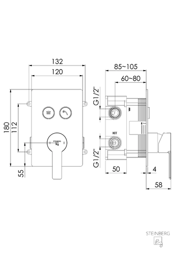 Steinberg Série 390 Set de finition, pour mitigeur bain/douche, pour 2 consommateurs, pushtronic