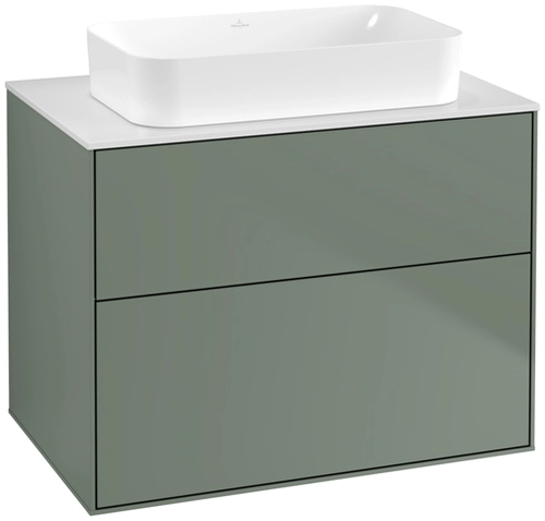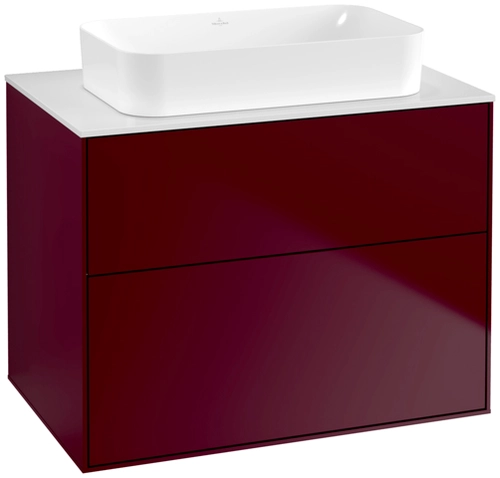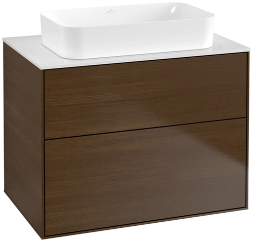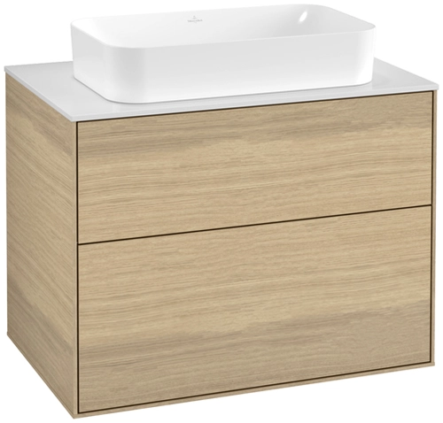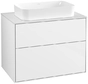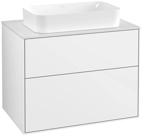 Villeroy & Boch Finion meuble sous lavabo, 2 tiroirs, avec éclairage, lavabo au centre, 800x603x501mm, Glass White Matt