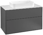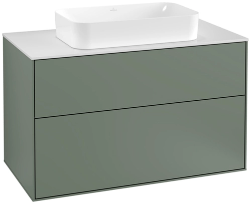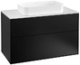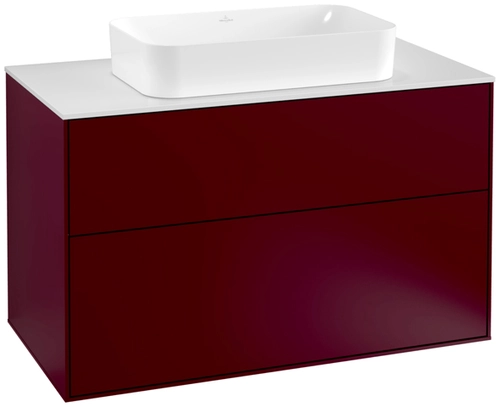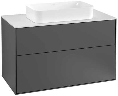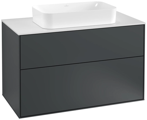 Villeroy & Boch Finion meuble sous lavabo, 2 tiroirs, avec éclairage, lavabo au centre, avec trou pour robinetterie, 1000x603x501mm, Glass White Matt