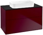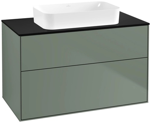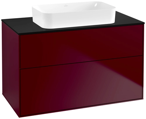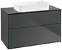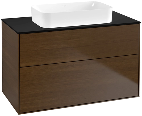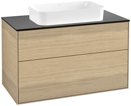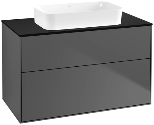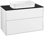 Villeroy & Boch Finion meuble sous lavabo, 2 tiroirs, avec éclairage, lavabo au centre, sans trou pour robinet, 1000x603x501mm, Glass Black Matt