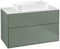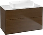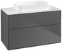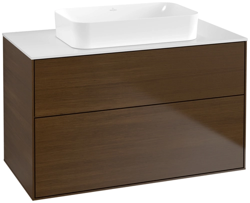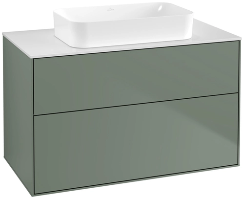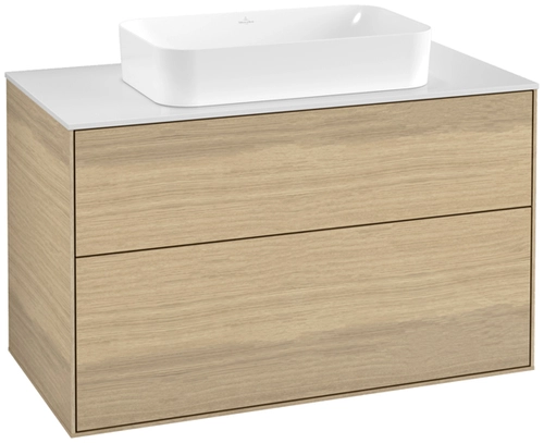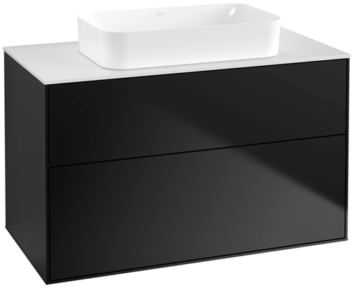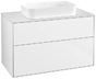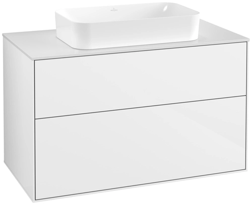 Villeroy & Boch Finion meuble sous lavabo, 2 tiroirs, avec éclairage, lavabo au centre, sans trou pour robinet, 1000x603x501mm, Glass White Matt