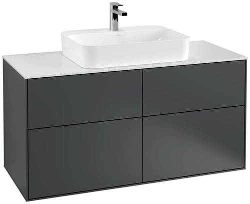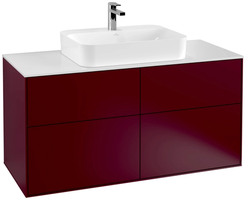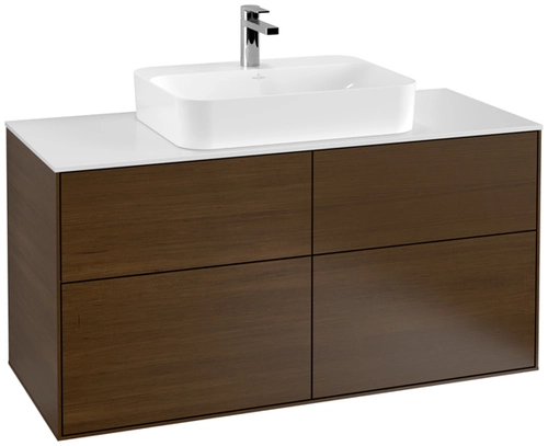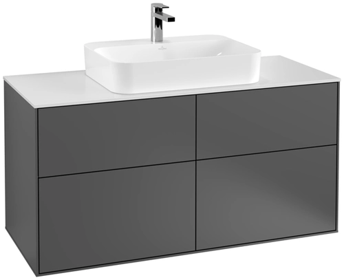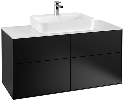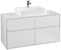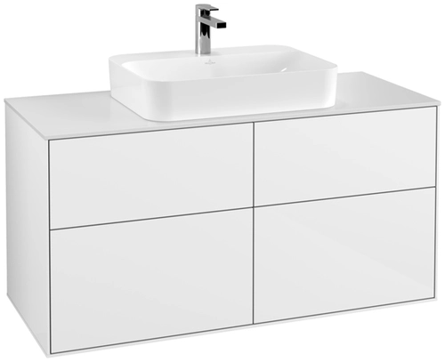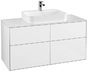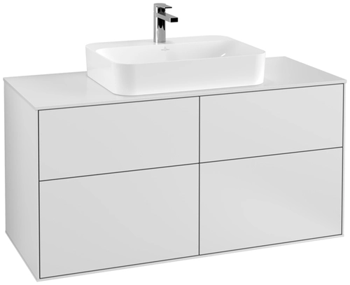 Villeroy & Boch Finion meuble sous lavabo, 4 tiroirs, avec éclairage, lavabo au centre, 1200x603x501mm, Glass White Matt