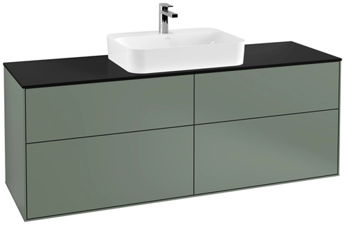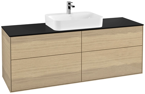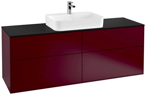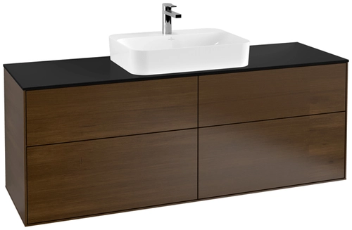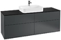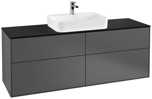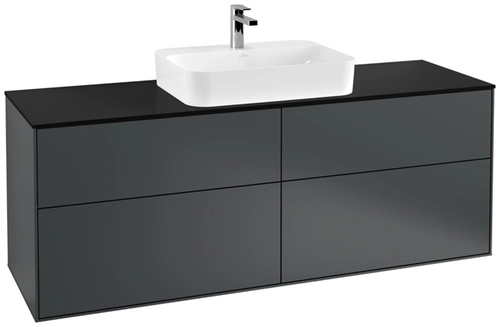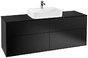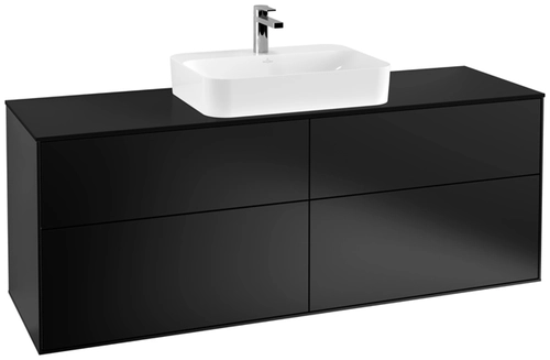 Villeroy & Boch Finion meuble sous lavabo, 4 tiroirs, avec éclairage, lavabo au centre, 1600x603x501mm, Glass Black Matt