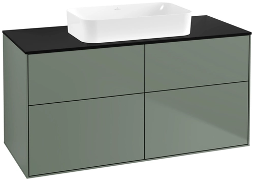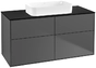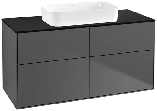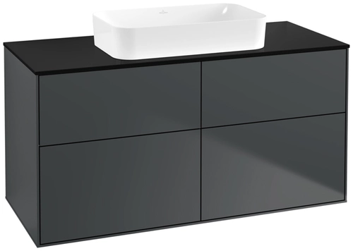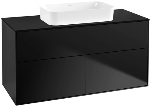 Villeroy & Boch Finion meuble sous lavabo, 4 tiroirs, avec éclairage, lavabo au centre, sans trou pour robinetterie, 1200x603x501mm, Glass Black Matt