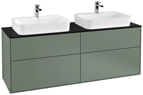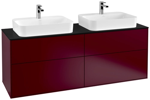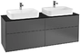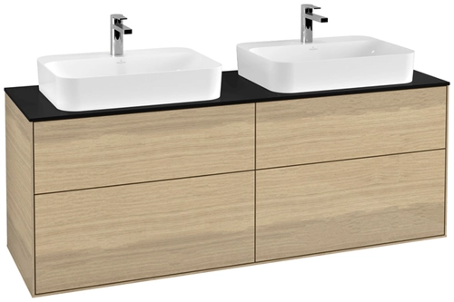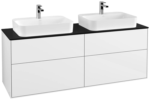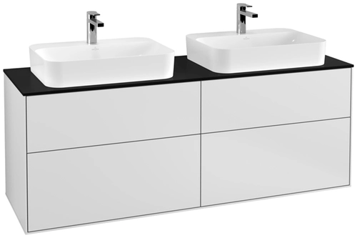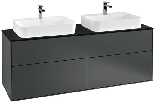 Villeroy & Boch Finion meuble sous lavabo, 4 tiroirs, avec éclairage, pour 2 vasques, 1600x603x501mm, Glass Black Matt