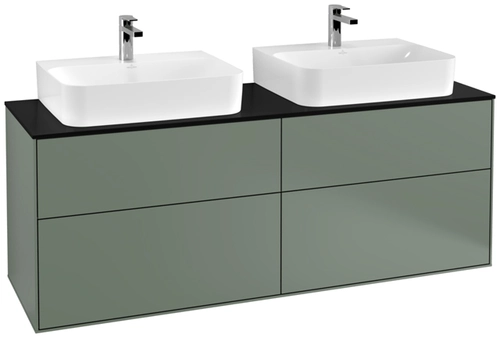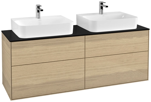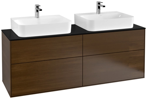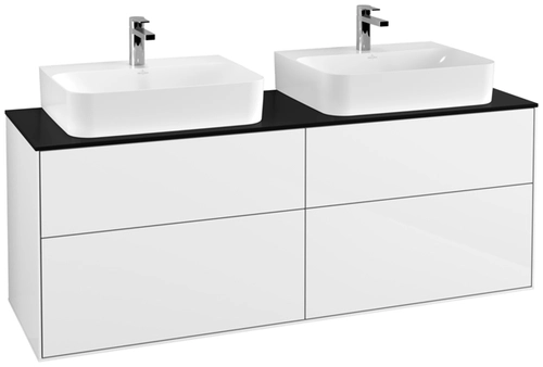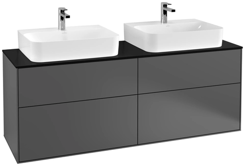 Villeroy & Boch Finion meuble sous lavabo, avec éclairage, pour 2 vasques, 1600x603x501mm, Glass Black Matt