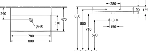 Villeroy & Boch Memento 2.0 lavabo mural, sans trou pour robinet, sans trop-plein, non poncé, 800x470mm