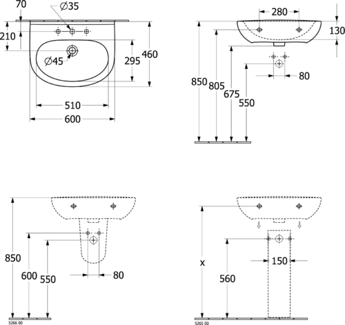 Villeroy & Boch O.novo lavabo, ovale, vasque au centre, 1 trou pour robinet, avec trop-plein, 600x460mm
