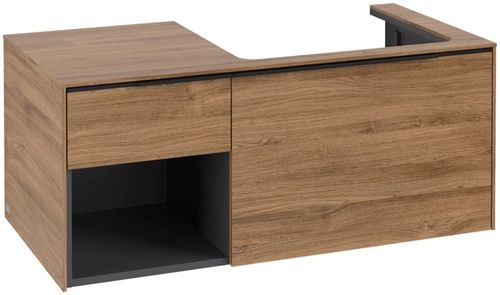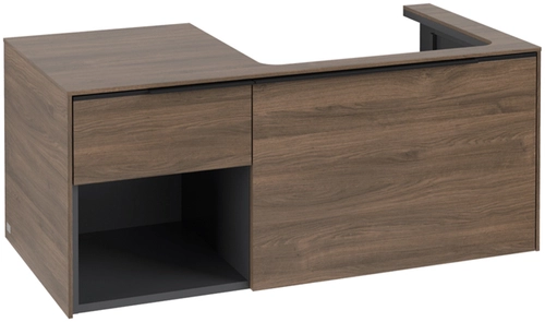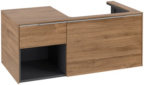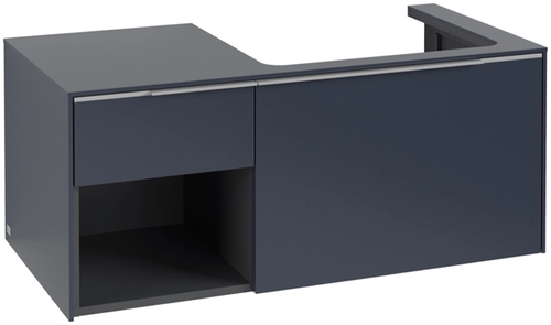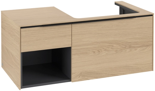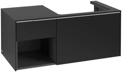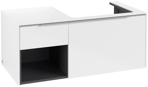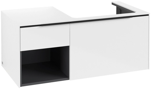 Villeroy & Boch Subway 3.0 armoire sous lavabo, éclairage LED, 2 tiroirs, lavabo à droite, élément d'étagère en bas à gauche, 1001x422,5x516mm