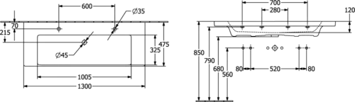 Villeroy & Boch Subway 3.0 lavabo à poser, 2 trous pour robinet, sans trop-plein, non rectifié, 1300x475mm
