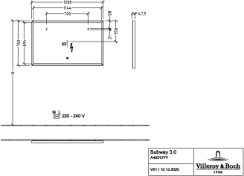 Villeroy & Boch Subway 3.0 Miroirs avec éclairage LED, rectangulaire, 1200x750x47,5mm