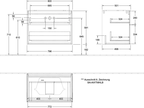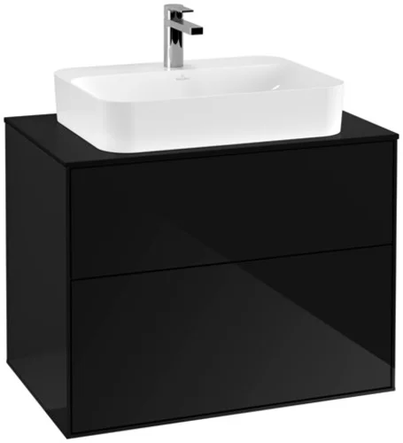 Villeroy & Boch Finion meuble sous lavabo, 2 tiroirs, 800x603x501mm, Glass Black Matt