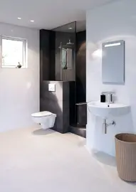 - Ausgerüstet mit Leerrohr für Wasserzuleitung zum Anschluss von Geberit Aqua-Clean Dusch-WCs