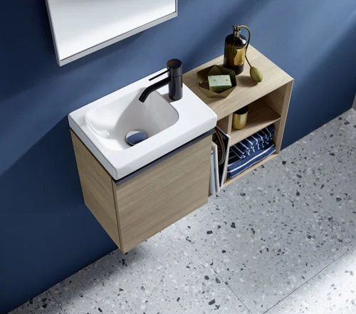 Das Geberit iCon Light Handwaschbecken ist für die Wandmontage konzipiert und unterbaufähig, wodurch du den Platz in deinem Badezimmer optimal nutzen kannst. Zudem lässt es sich mit den Unterschränken 502300 oder 5023001 kombinieren, um noch mehr Stauraum zu schaffen.