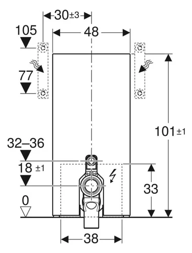 Der seitliche Wasseranschluss und der Netzanschluss mit einer dreiadrigen flexiblen Mantelleitung erleichtern die Installation und Integration des Moduls in Deinem Badezimmer.