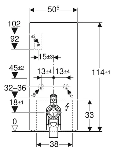 Der Wasseranschluss befindet sich hinten mittig am Modul, während der Netzanschluss mit einer dreiadrigen flexiblen Mantelleitung eine einfache Integration in Deinem Badezimmer ermöglicht.