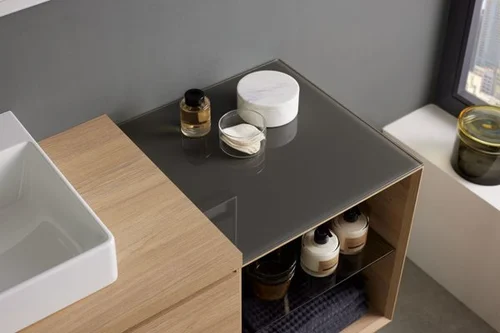 Die Geberit One Abdeckung für Seitenschränke und Seitenelemente verbindet hohe Qualität mit einem attraktiven Design. Das klare Glas wirkt modern und zugleich zeitlos, sodass es sich in verschiedene Stilrichtungen einfügt. Darüber hinaus ist Glas ein robustes Material, das leicht zu reinigen ist und eine lange Lebensdauer hat.