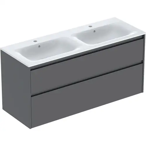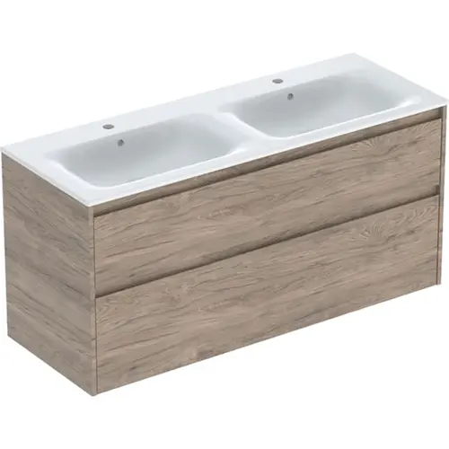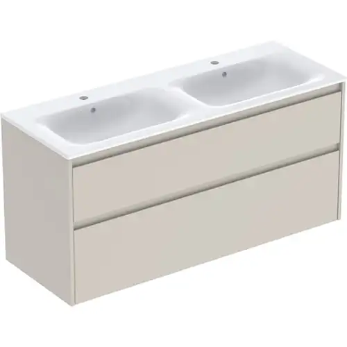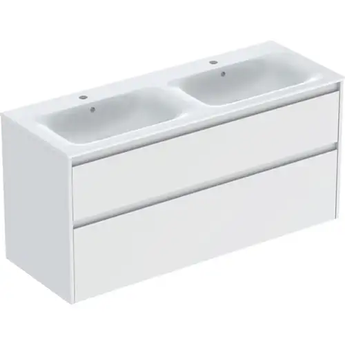 Geberit Renova Plan Set Doppelmöbelwaschtisch schmaler Rand, mit Unterschrank, 2 Schubladen, 130x62,1x48cm
