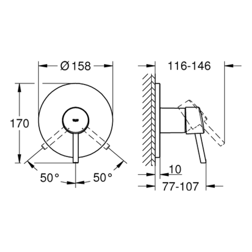 - Wandrosette mit GROHE FastFixation mit verdeckter Rosetten- und Schaftabdichtung, verdeckte Befestigung
