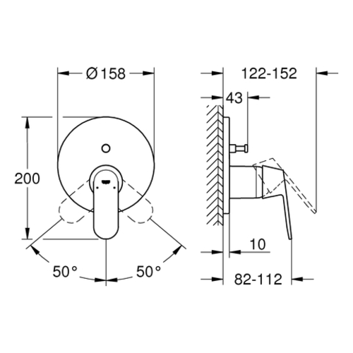 - Wandrosette mit GROHE FastFixation mit verdeckter Rosetten- und Schaftabdichtung