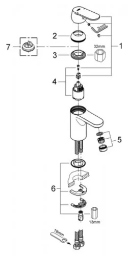 • Grohe SilkMove, 35 mm ceramic cartridge