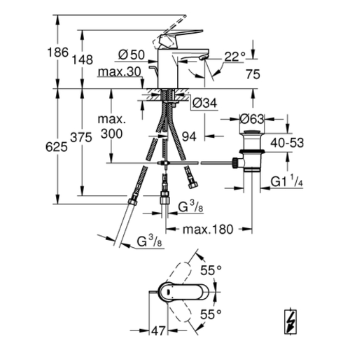 Grohe Eurosmart Cosmopolitan Einhand-Waschtischbatterie, S-Size, Ausladung 92mm, Niederdruck, Zugstangen-Ablaufgarnitur