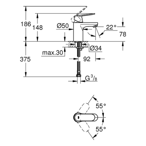 Grohe Eurosmart Cosmopolitan single-lever basin mixer, S-size, 92mm projection, without pop-up waste