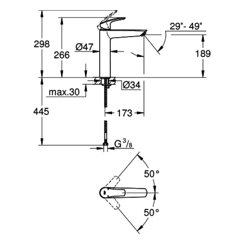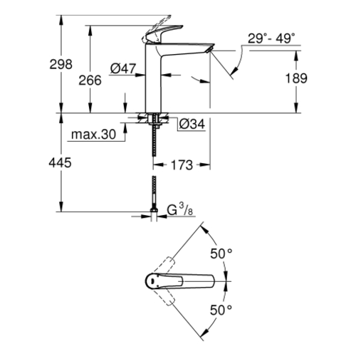 Grohe Eurosmart Einhand-Waschtischbatterie, XL-Size, Ausladung 173mm, ohne Ablaufgarnitur