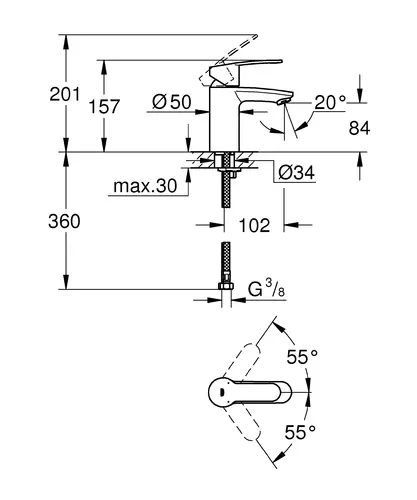 Grohe Eurostyle Cosmopolitan single-lever basin mixer, S-size, projection 102mm, without pop-up waste