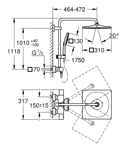 Système de douche Grohe Rainshower SmartActive 310 avec mitigeur thermostatique