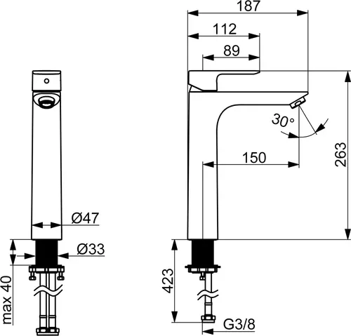 - Anschlussart: Anschluss über flexible Druckschläuche (G3/8)