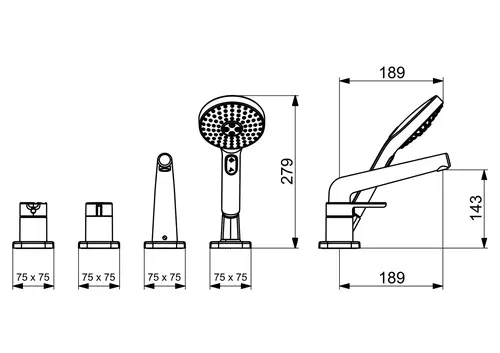 HANSA HANSADESIGNO Style ready-to-install set for bath/shower, 4-hole, projection: 189mm