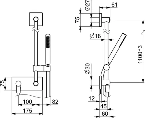 • Grootte douchestang: 1100 mm