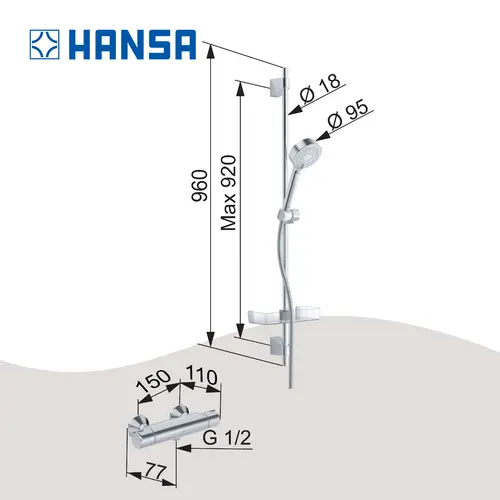 HANSA HANSAMICRA shower fitting, with safety device, 3-jet