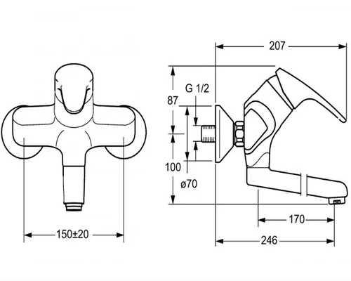 • Temperatuurbegrenzer, warmwaterstop instelbaar (bij levering inbegrepen)