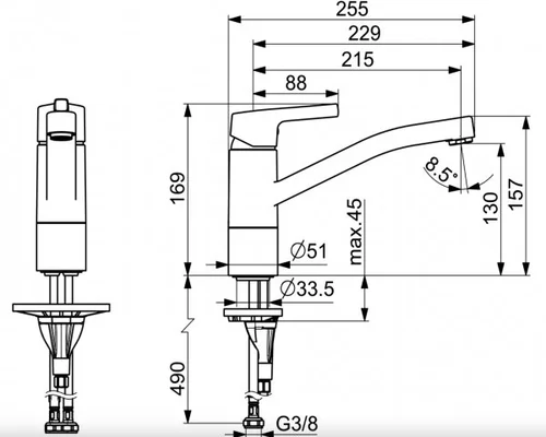 HANSA HANSAPALENO keukenmengkraan, vrijstaand, 216 mm uitval, chroom