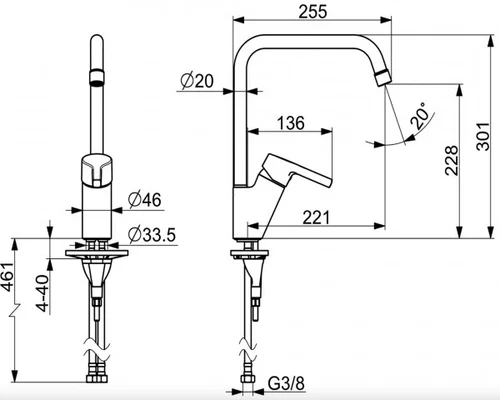 HANSA HANSAPALENO kitchen faucet, free-standing, 221 mm projection, chrome