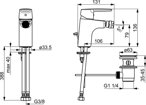 HANSA HANSAPOLO Bidetbatterie, mit Ablaufgarnitur, Ausladung 106mm