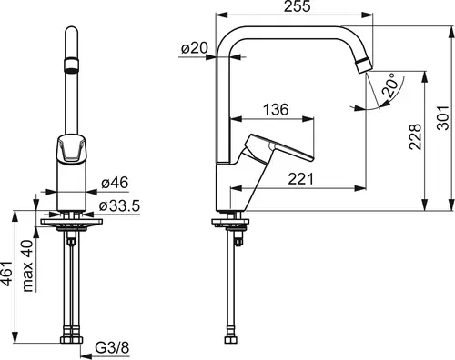 HANSA HANSAPOLO Eco kitchen faucet, 6 l/min, 221mm projection, 5270220300046