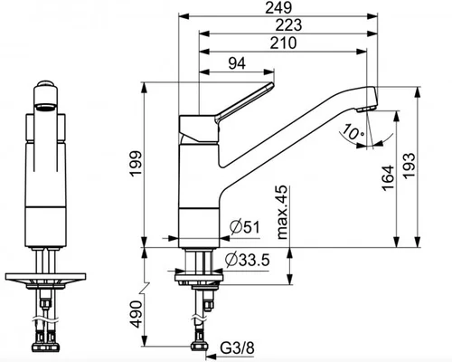 - Auslauf schwenkbar, Anschlag herausnehmbar