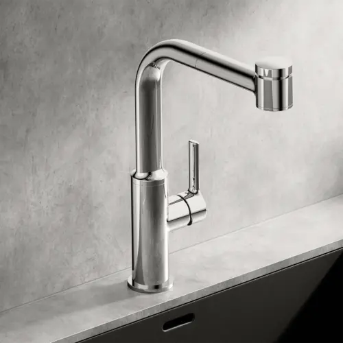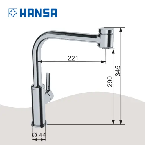 HANSA HANSARONDA Küchenarmatur, seitenbedient, 2-strahlig, schwenkbar/ausziehbarer Auslauf, Ausladung: 221 mm