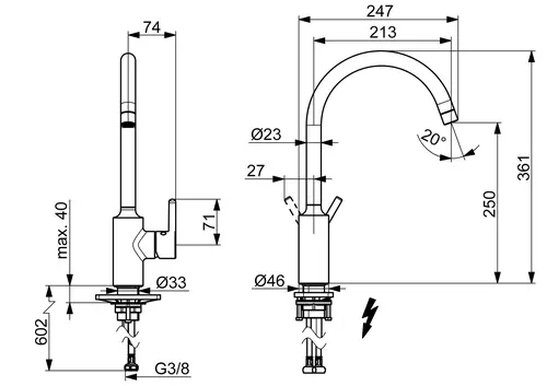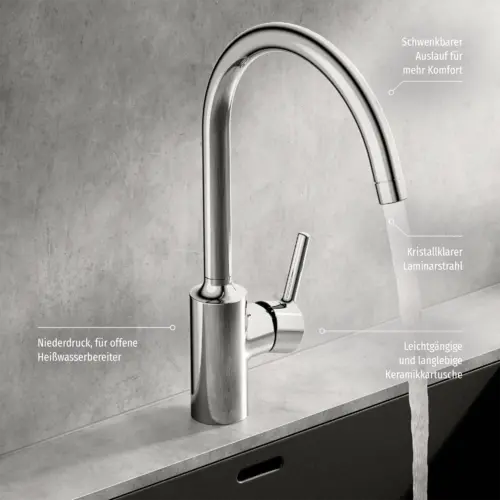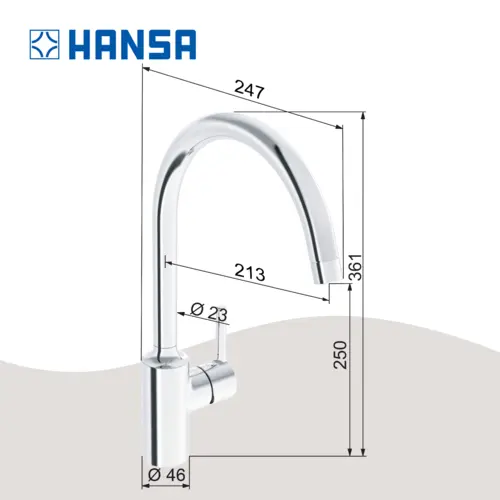 HANSA HANSAVANTIS keukenmengkraan, lage druk, 247mm projectie, draaibare uitloop, chroom