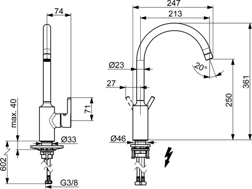 HANSA HANSAVANTIS Küchenarmatur, Niederdruck, Ausladung 247mm, schwenkbarer Auslauf, Mattschwarz