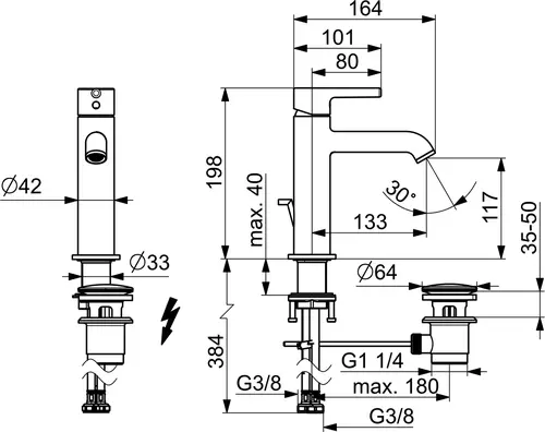 HANSA HANSAVANTIS Style basin mixer, low pressure, with drain set, projection 133mm, chrome