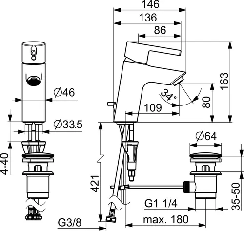 - Temperature limiter, energy-saving version (Cold Start), cold water in centre position