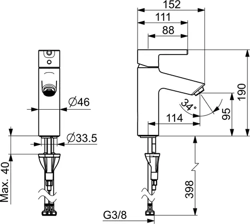 HANSA HANSAVANTIS XL Waschtischbatterie, Pinhebel, ohne Ablaufgarnitur, Ausladung 114mm