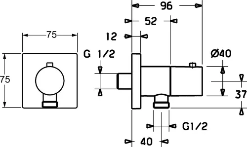 HANSA muurverbindingsboog, hoekig, 75x75 mm, chroom