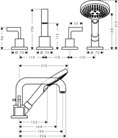 Handgeschakeld AXOR-basislichaam voor 4-gats tegelrandenmontage