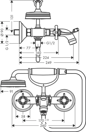 hansgrohe AXOR Montreux 2-Griff-Wannenarmatur Aufputz